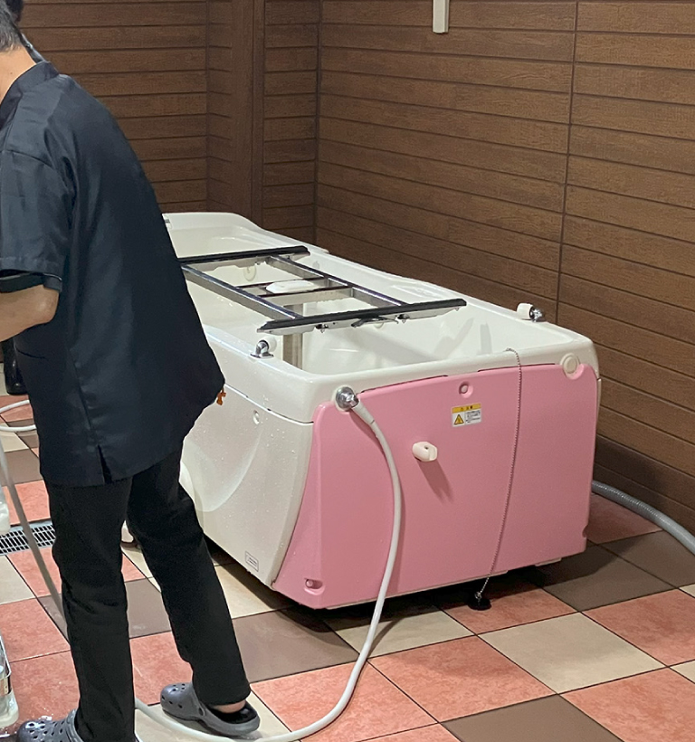 また、安全かつ快適に入浴していただけるよう、高機能な機械浴槽を導入しています。様々なケースに対応し入浴できる設備で、身体に負担をかけずに清潔を保てるのはもちろん、入浴の時間がリラックスタイムになるよう、プライバシーにも配慮した設計です。