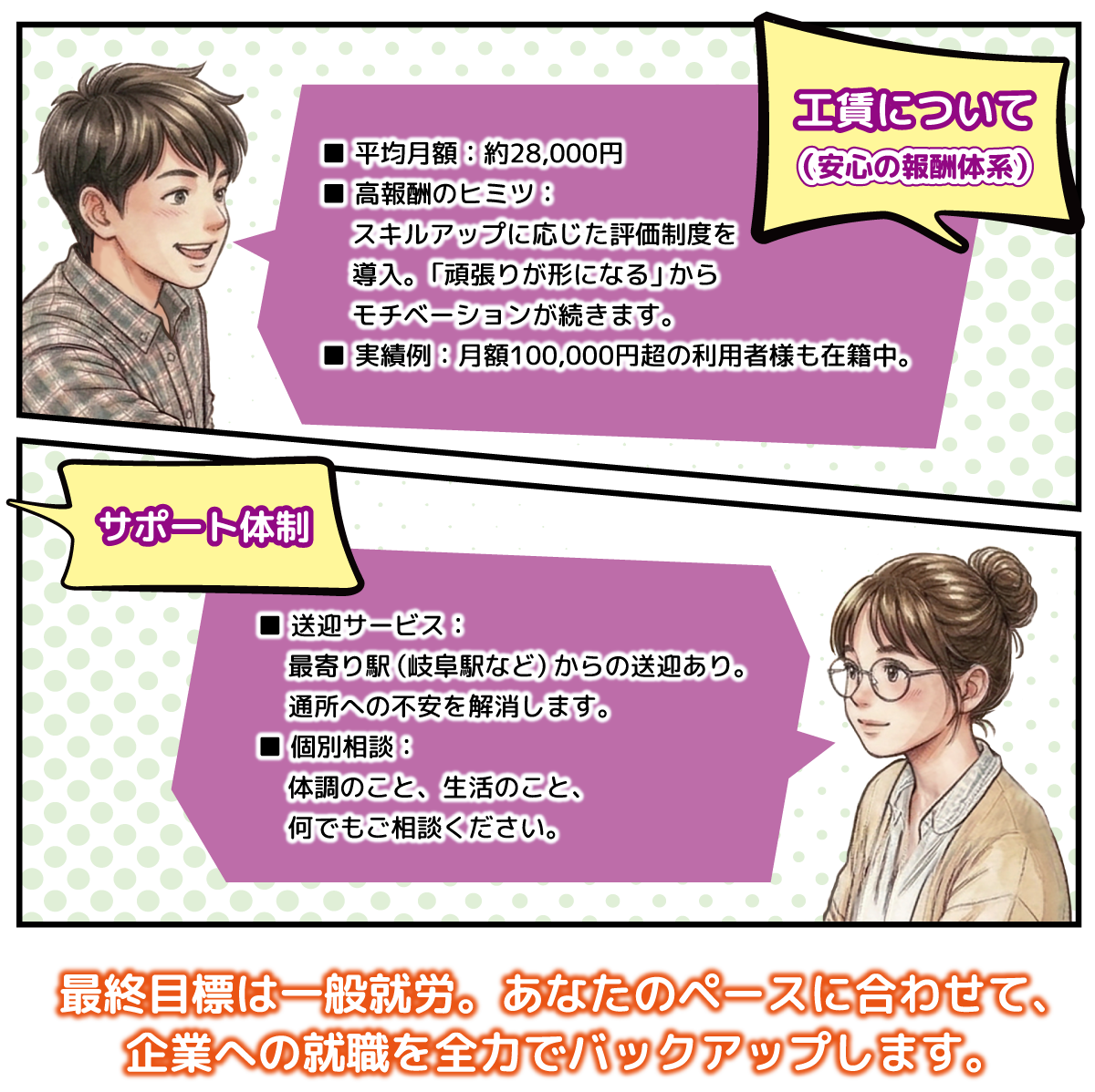単に作業を行う場所としてだけでなく、日々の活動を通じて「達成感」や「自分の役割」を実感できる場でありたいと考えています。